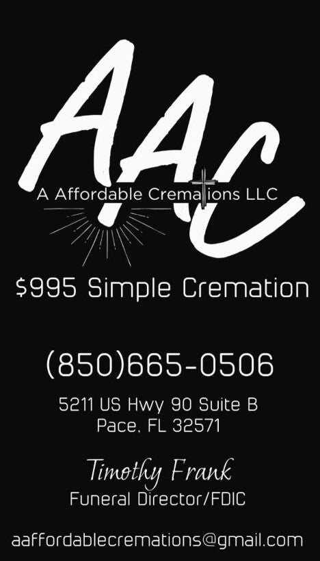A Affordable Cremations LLC is dedicated to providing respectful and affordable cremation services in North Florida. We are here to support you with compassion, Dignity and understanding during your time of need.